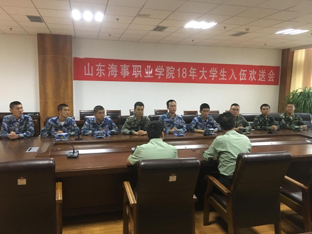 9月11日下午,学院在图书馆一楼会议室为2018年入伍的大学生举行了欢送会。武装部部长、学生处处长张锡功,武装部副部长孟凡明,武装部干事李俊杰以及入伍大学生代表参加了欢送会。