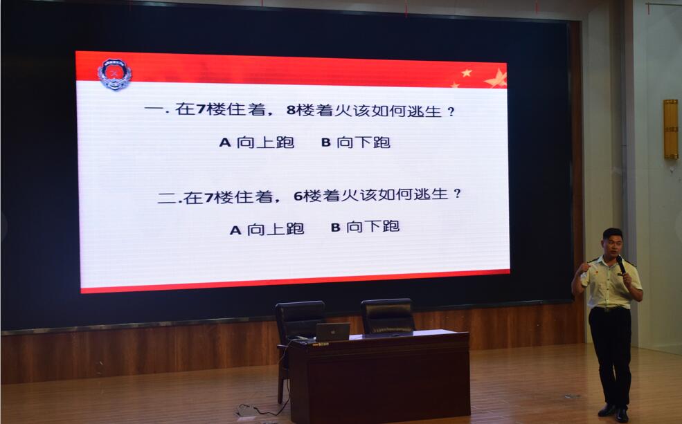 朱教官一开始就与同学们进行现场互动通过提问防火常识小知识来引出日常生活中可能出现的安全隐患,对其中几个主要的问题进行详细的解答。如:如何预防火灾、发生火灾如何自救等,并结合ppt用一个个触目惊心的实例来告诫同学们预防火灾的重要性。在活动的最后朱教官对灭火器的使用方法进行了详细的说明,规范同学们使用灭火器的动作,避免大家在灭火器的使用方面出现错误。大火无情短时间内就能吞噬一切,安全与危险只是一瞬间,安全来不得半点麻痹与放松,人的生命只有一次,一旦失去就不会再有回来的时候!