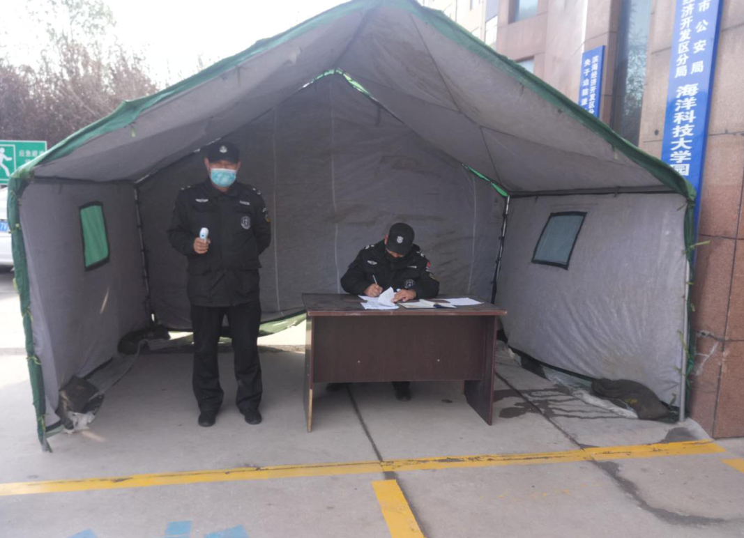 严把一线关口,守好前沿防线。增强门岗力量,加强门禁管理。安保人员按照值班安排表严格执行值班制度,坚决执行防控规定,严守校门、严格管理,做好信息登记、体温测量和消毒等工作,严格管控所有进入校园的车辆和人员,严守校园“防疫抗疫”工作第一道防线。