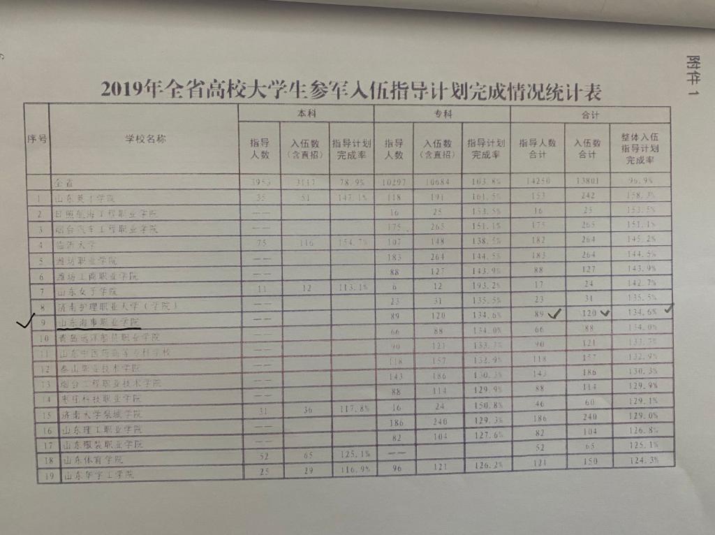 在2019年度征兵工作中,我校武装部积极部署,学校领导高度重视,多方协调合作,高质量完成2019年度省征兵办下发我校征兵任务数,入伍率全省排名第九,被评为“2019年度全省征兵工作先进单位”。