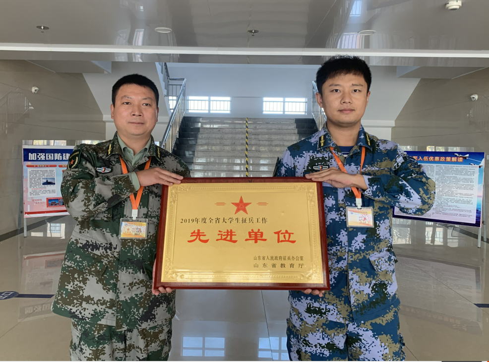 日前,山东省人民政府征兵办公室、山东省教育厅联合发文,对全省征兵工作进行通报表彰,我校荣获“2019年度全省大学生征兵工作先进单位”。