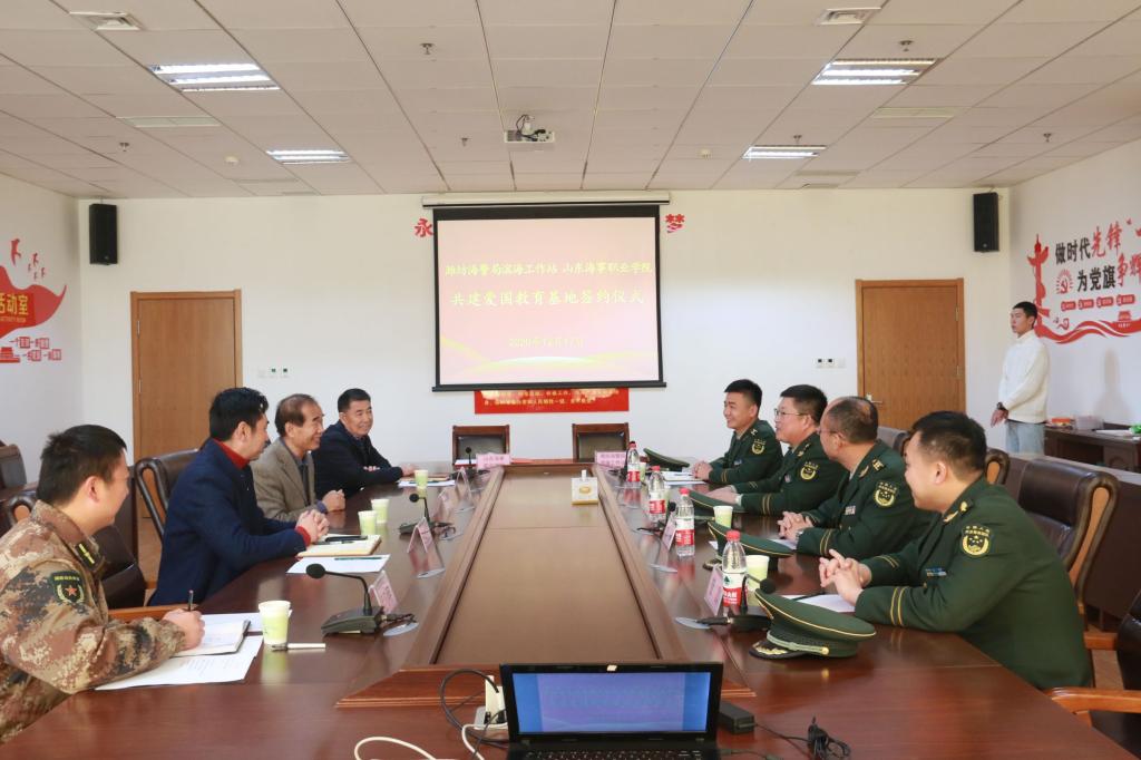 签约仪式上,潍坊海警局与山东海事职业学院共同签署《爱国教育基地共建协议书》,双方领导共同为爱国教育基地签约,并就共建的形式内容、运行机制进行了深入细致的交流,商定了在爱国教育、法制教育、军民融合等方面相互支持的合作方针。双方表示,今后将不断加强合作共建,共同推动爱国教育基地的有效运作,给大学生创造一个自我培养提高爱国素质、塑造健全人格和崇高品格的综合实践平台。