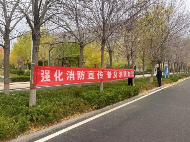 鲜艳醒目的消防宣传横幅用通俗易懂的一句句消防宣传口号,提示师生们要关注消防安全,提高消防安全意识,也在校园形成了一道道独特而亮丽的风景线,也为“119”消防宣传月营造良好的消防宣传氛围。