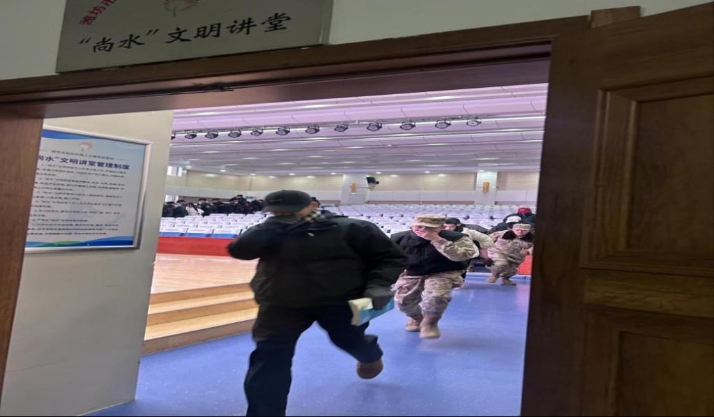 讲座由滨海消防救援大队中队长王子坤主讲,王队长带领同学们观看了消防安全宣传视频,结合自己参与救援的生动案例,从地震的成因、危害、避险等方面进行深入讲解,全面普及防震减灾常识。讲座结束后,在王队长的指导下,组织现场学生进行应急安全演练,同学们按照指令紧张有序地沿着疏散路线,迅速通过楼道、安全出口,到达指定避难场所。