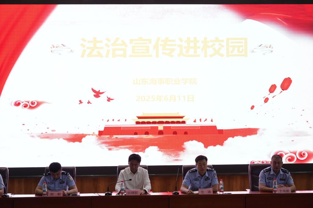 值此全国第24个“安全生产月”活动深入开展之际,为扎实推进平安校园建设,提升师生法治素养与安全防范能力,近日,我校在图书馆报告厅举办"法治校长进校园"活动。潍坊市公安局滨海分局副局长、我校法治校长兰涛,携刑警大队大队长于海鹏、大学园派出所副所长王丽鹏、刑警大队信息中队队长刘利等公安干警走进校园,为师生带来一场别开生面的法治教育盛宴。