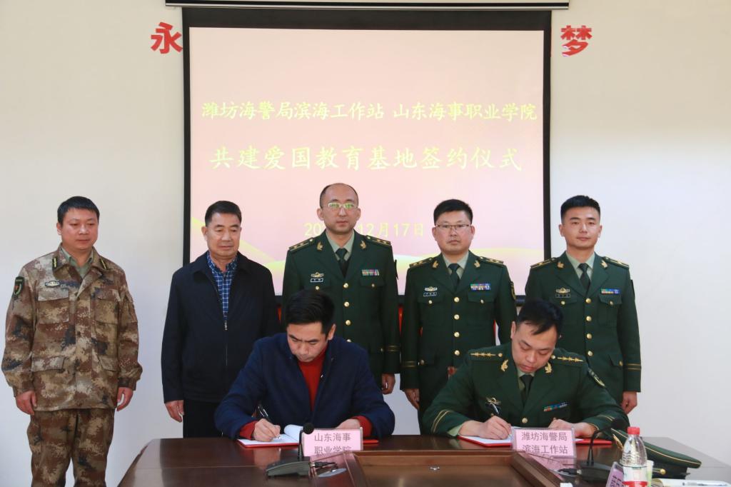 签约仪式上,潍坊海警局与山东海事职业学院共同签署《爱国教育基地共建协议书》,双方领导共同为爱国教育基地签约,并就共建的形式内容、运行机制进行了深入细致的交流,商定了在爱国教育、法制教育、军民融合等方面相互支持的合作方针。双方表示,今后将不断加强合作共建,共同推动爱国教育基地的有效运作,给大学生创造一个自我培养提高爱国素质、塑造健全人格和崇高品格的综合实践平台。