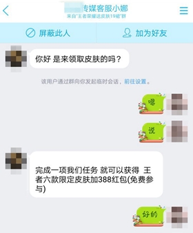 据了解,骗子最初通过游戏平台或短视频软件公开发布虚假广告,用高额佣金、奖品等吸引注意,诱惑受害者主动与之联系。然后将他们引流到“官方群”“活动群”,以客服的身份接近、发布任务,告诉他们完成任务就可以领取奖励。