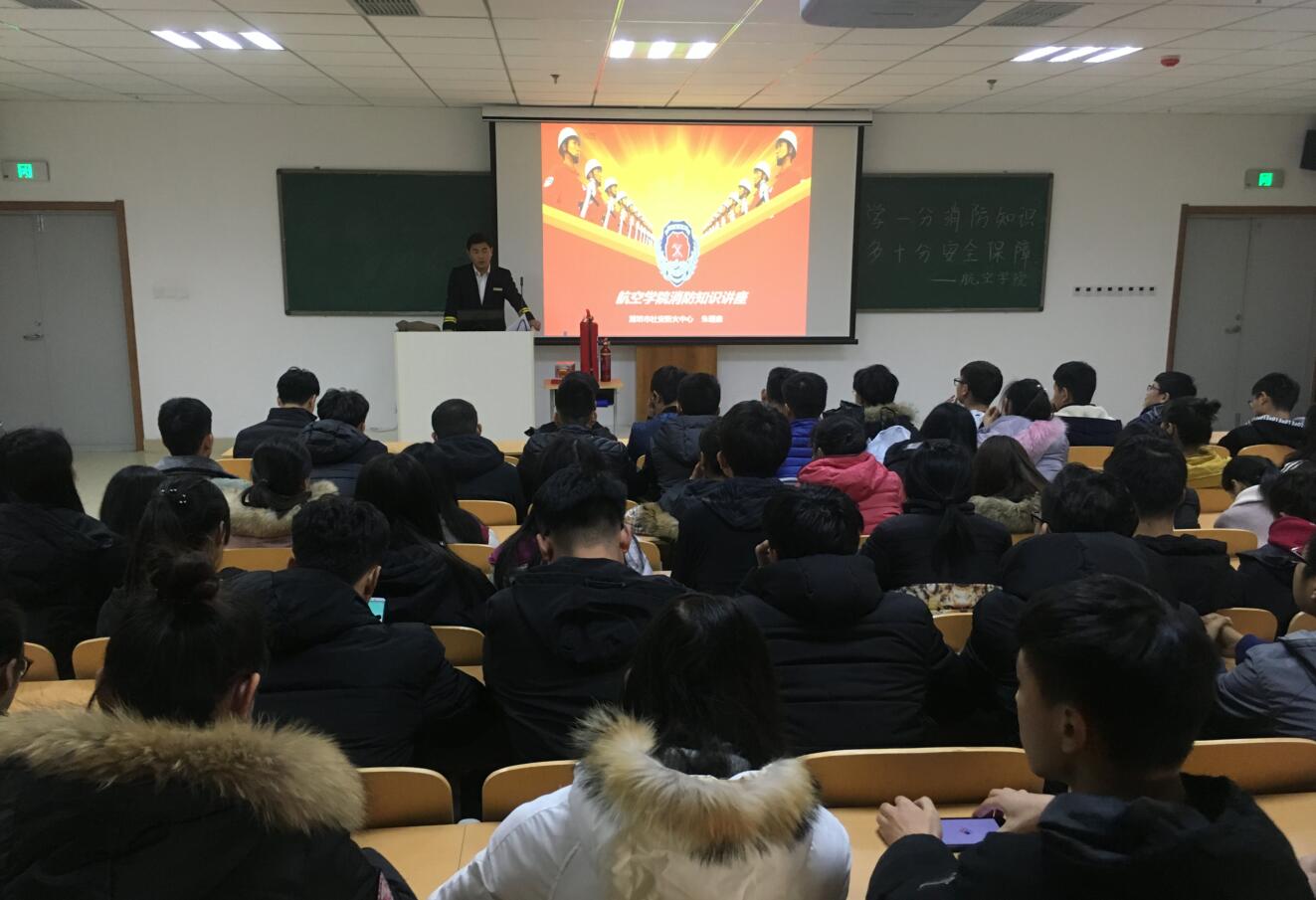 为增强我院师生消防安全意识和遇突发事件的紧急逃跑自救能力,筑牢校园消防安全防火墙,12月7日安保处邀请防火中心朱理鑫教员在图书馆信息化教室为航空学院师生开展了消防安全知识培训。