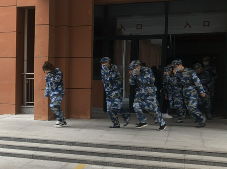 演练过程中,随着警哨声的响起,在场的工作人员立即到达指定岗位,认真协助、指导全体师生根据应急预案中规定的路线,捂住口鼻,弯着腰有序撤离到安全地带。根据计时,最快到达安全地带的同学仅用时20秒。整个演练过程紧张有序,实用性强。