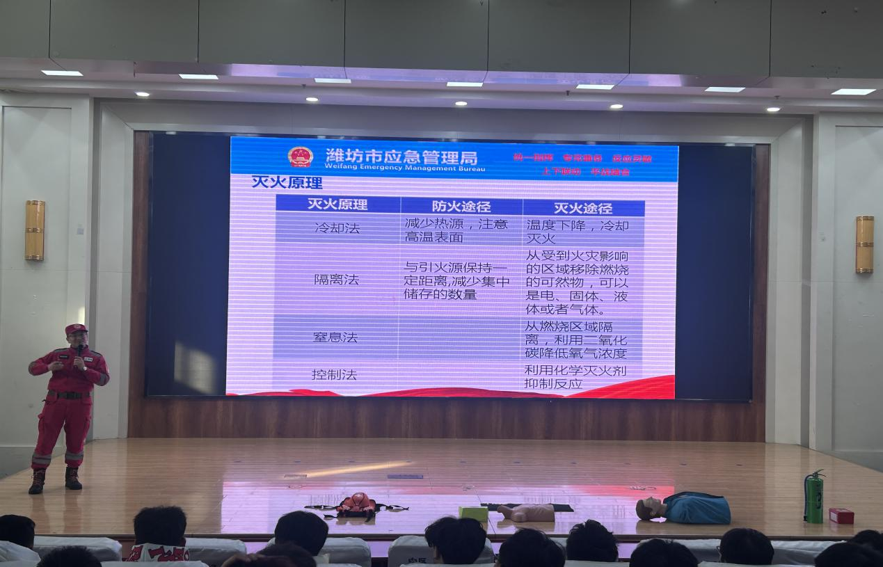 为增强同学们的消防安全意识,提升应急处置能力,11月28日学校邀请潍坊市应急管理局在图书馆报告厅开展“全民消防,生命至上”为主题的消防知识讲座。本次讲座由潍坊市应急管理局应急专家王显朋主讲,学校400余名学生代表聆听讲座。