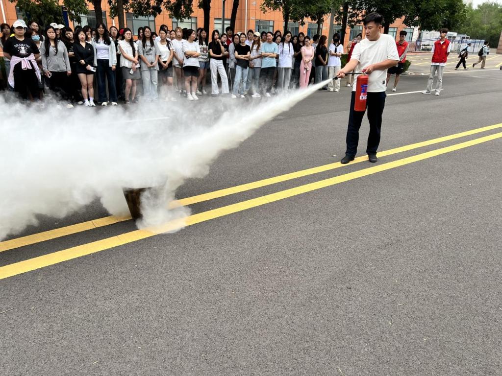 随后,安全处老师为同学们详细讲解了常见消防器材的使用方法。针对灭火器,从“提、拔、握、压”四步操作要领入手,结合实物演示,让大家清晰了解如何在火灾初期快速、准确地使用灭火器扑灭明火;对于消防栓的连接、展开水带及喷水技巧,确保每位师生都能掌握关键要点,同学们踊跃参与实操练习。