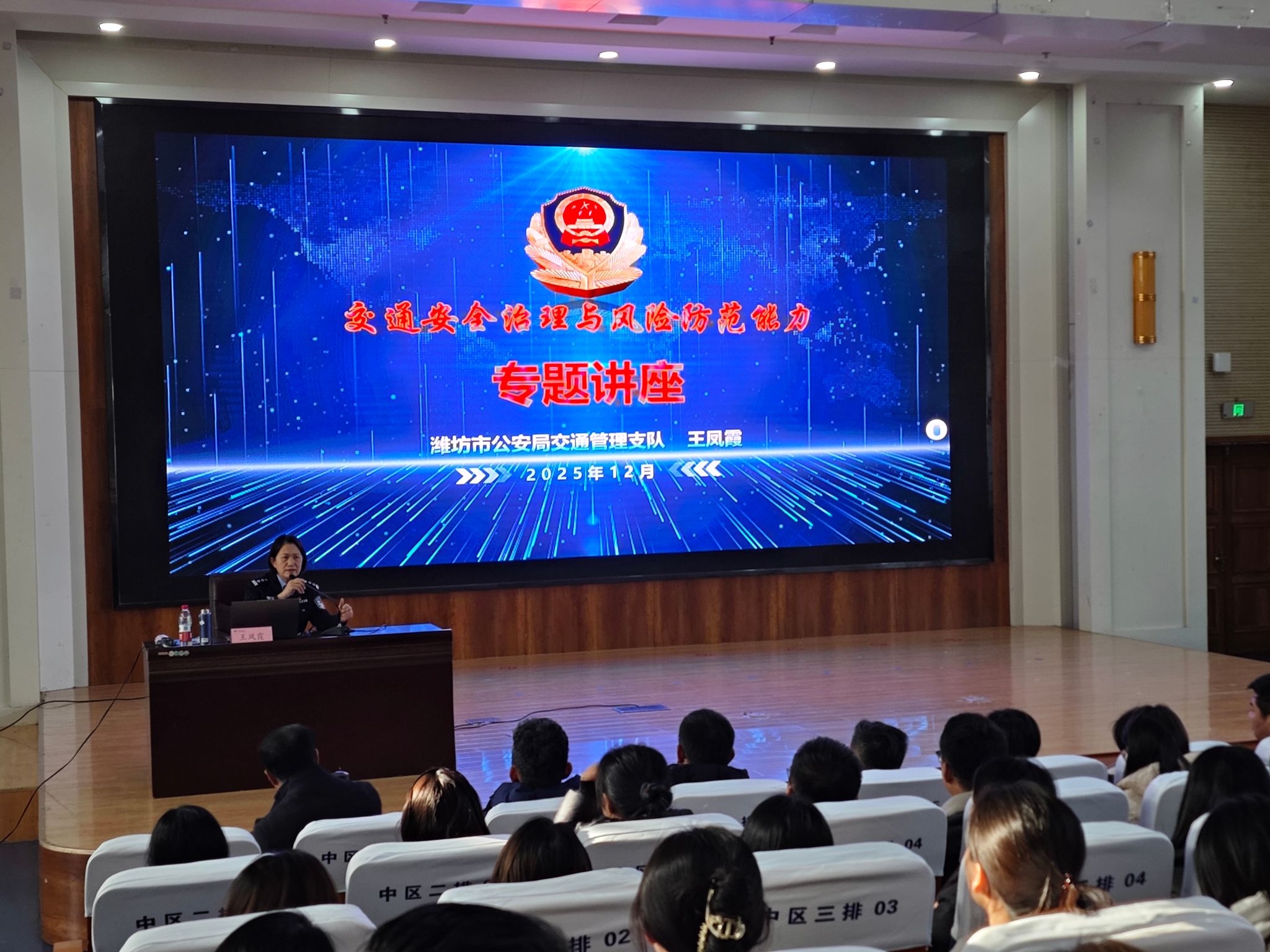 12月15日下午,我校在南区报告厅举办“交通安全治理与风险防范能力专题讲座”,全校师生共同参加此次活动。